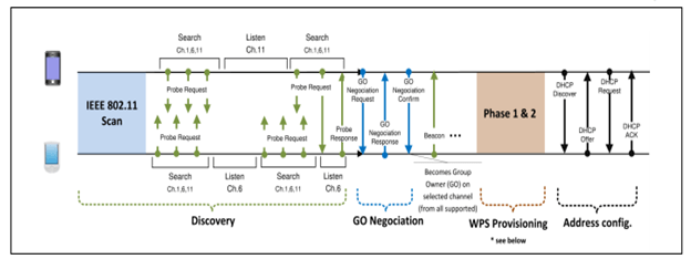 Observe the below flow chart for P2P Negotiation Method. Devices has to go through multiple phases to form a group.