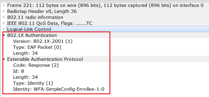 3) Now Peer device will send the response identity to the GO. And Peer device is sending Identiy as “WFA-SimpleConfig-Enrollee-1-0” , and the GO is the Registrar.