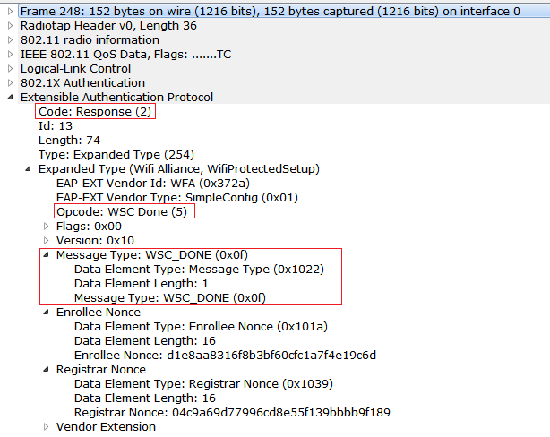9) Now the Enrollee sends the WSC_DONE to the Registrar and the Wifi Simple configuration will end after this message. Observe the below capture to see this frame.