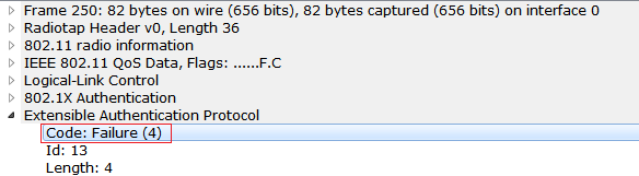 Observe the EAP-FAIL Message being sent by the Registrar (GO).