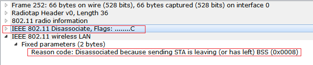 11) Now the supplicant(Enrolle) will disasscoiate and it will send the disassociation frame to the GO(Registrar). Observe the below capture.