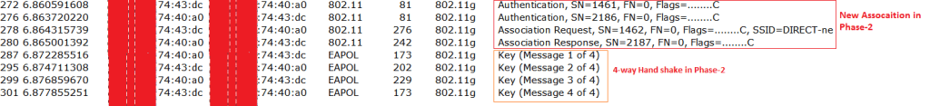 We will see the sniffer capture to see about the Phase 1 and Phase 2 of the group formation. See the below capture to observe the phase-1 and phase-2 of the P2P Group formation using PBC method.