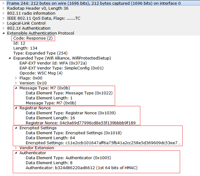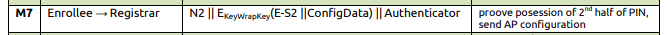 7) Observe M7 Message being sent from the Enrollee (supplicant) to Registrar (GO) , and here Enrollee proves the 2nd half of the PIN and the mutual authentication to prove the 2nd half of the pin ends here.