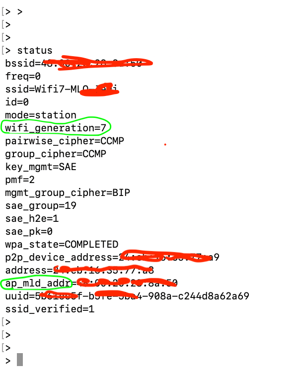 we should see successful connection established, once we type status in wpa_cli and also wee should see WiFi7 in the status.